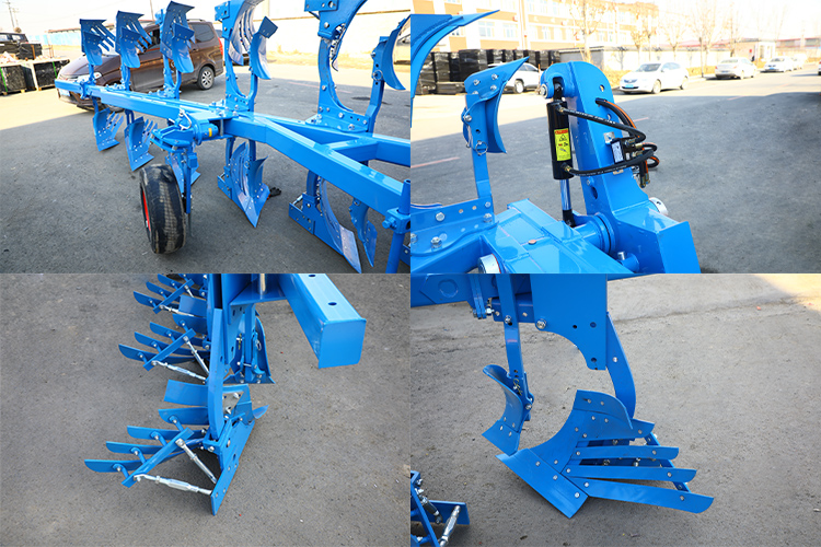 The Grįžtamasis plūgasyra sudarytas iš šešių šerdies modulių: pakabos rėmo, atbulinės eigos cilindro, patikrinimo vožtuvo mechanizmo, žemės rato mechanizmo, plūgo rėmo ir plūgo korpuso. Plūgo rėmas vertikaliai nukreiptas į priekį ir atgal, kai prailgina ir atitraukia cilindro stūmoklio lazdelę. Žemės rato mechanizmas pritaiko varžtų reguliavimo technologiją, kad integruotų arimo gylio ir transportavimo funkcijų valdymą.